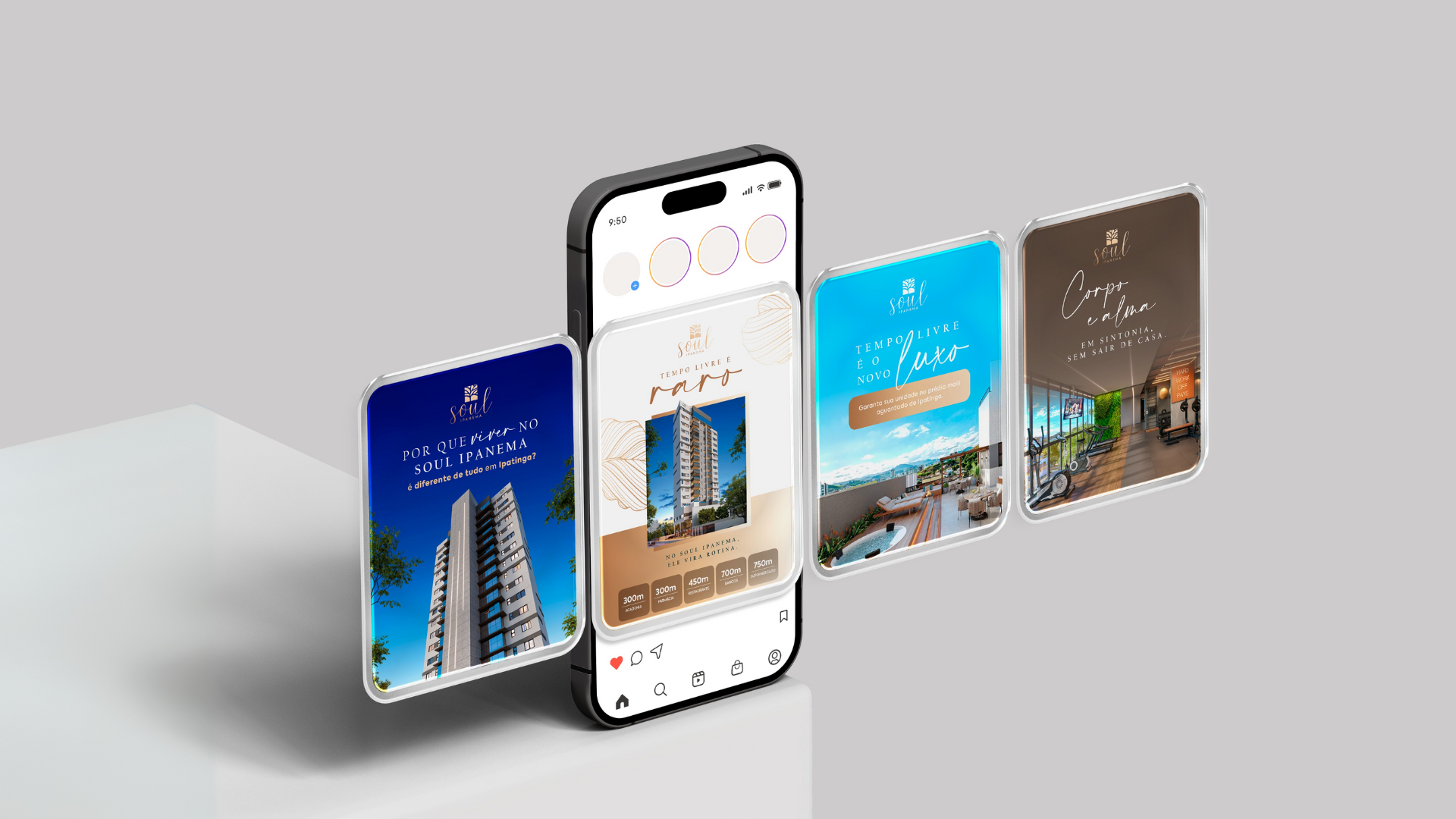 Criamos o conceito criativo, identidade visual e comunicação do Soul Ipanema, um empreendimento que redefine o que é viver com sofisticação: trocar pressa por presença e rotina por vida. A narrativa foi construída para destacar que o verdadeiro luxo está em tempo, conveniência e qualidade de vida, refletindo a localização privilegiada no coração de Ipatinga e a proposta de ter a cidade como extensão de casa.
