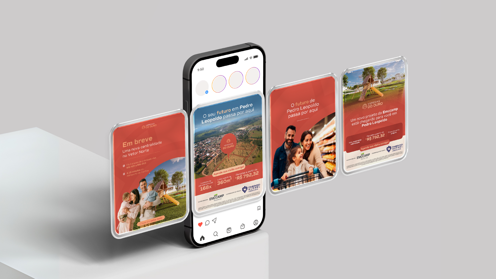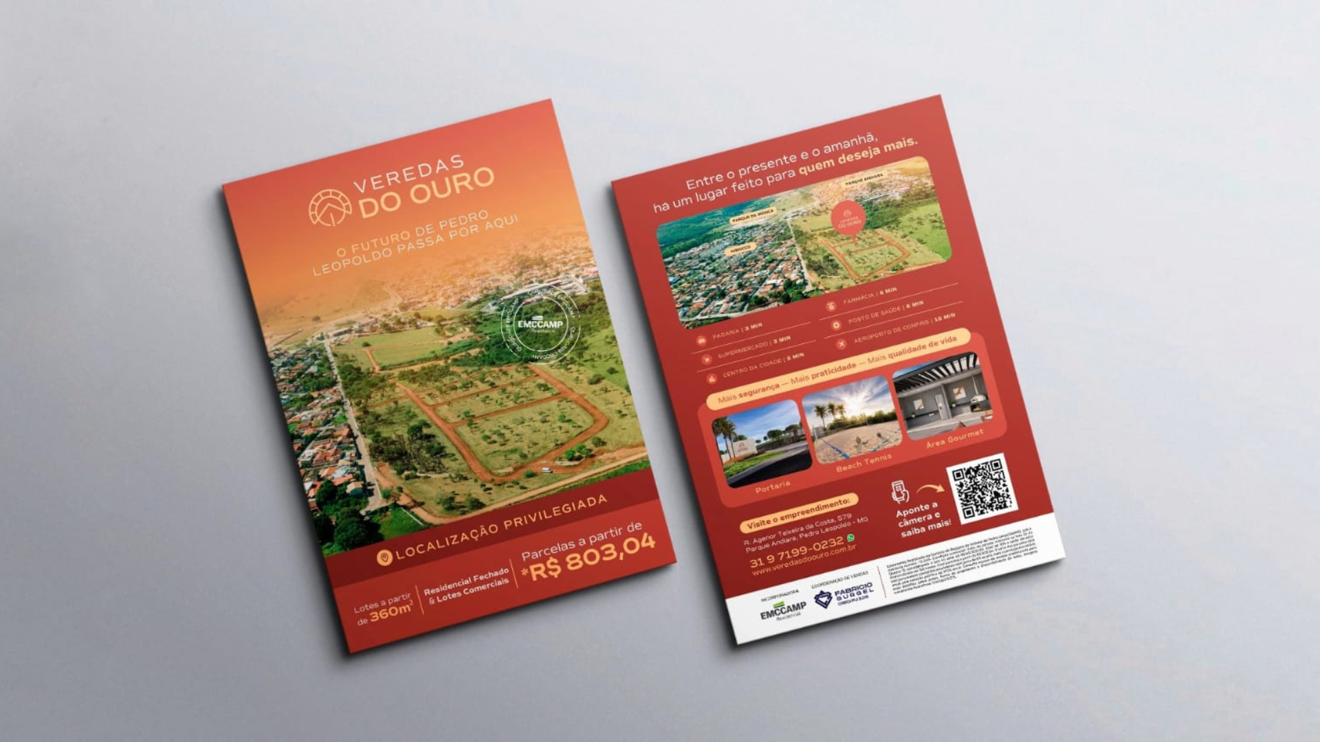Desenvolvemos todo o processo de rebranding do Veredas do Ouro, criando uma comunicação alinhada ao público e estabelecendo diferenciação clara entre loteamento aberto e condomínio fechado por meio da identidade visual e da paleta de cores. Produzimos todas as peças online e offline, além de oferecer suporte estratégico em marketing e vendas, garantindo consistência e impacto em cada ponto de contato com o cliente.